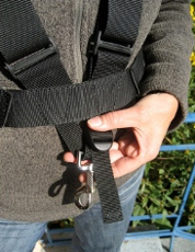 Die Karabiner hängen an 3cm breitem Gurtband und sind ebenfalls verstellbar.